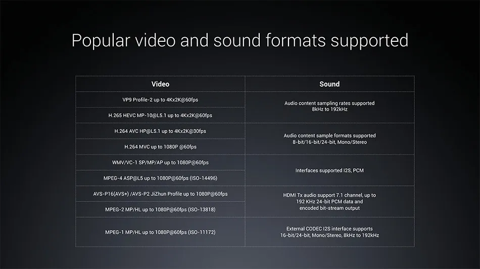 VP9 Profile-2 up to 4K x 2K @ 60fps