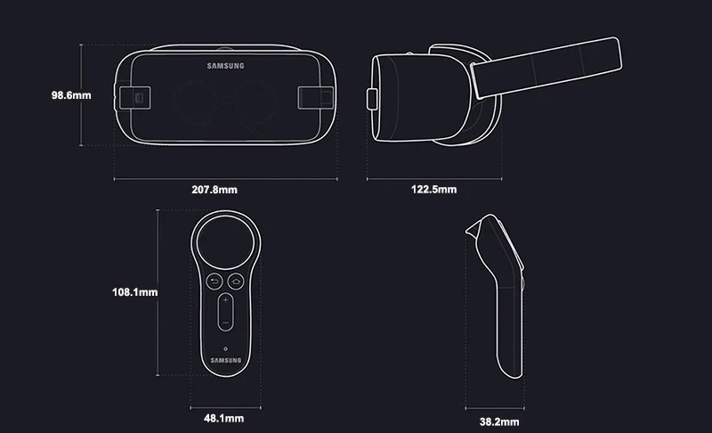 1*Gear VR 5.0+1*Gear Remote Controller (remote with Battery)+1*Manual(with package)