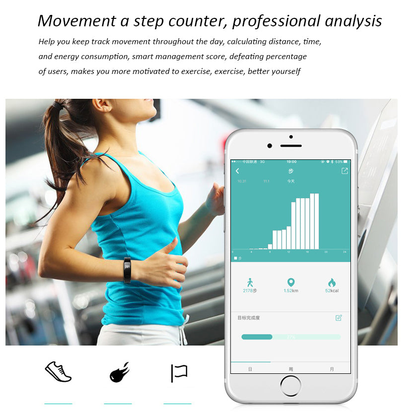 Language: English; Function: Fitness Tracker,Message Reminder,Blood Pressure,Call Reminder,Passometer,Remote Control,Sleep Tracker,Heart Rate Tracker;