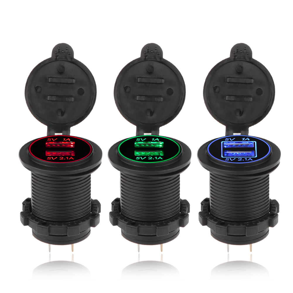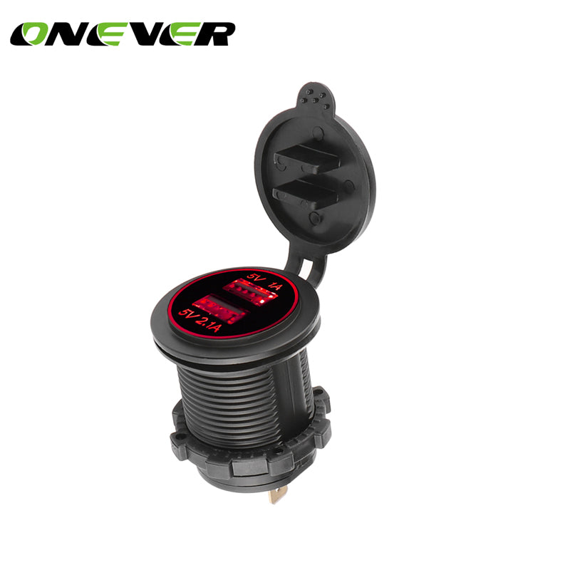 Onever Universal Cigarette Lighter Car Charger USB Vehicle DC12V-32V Waterproof Dual USB Charger 2 Port Power Socket 5V 2.1A/1A
